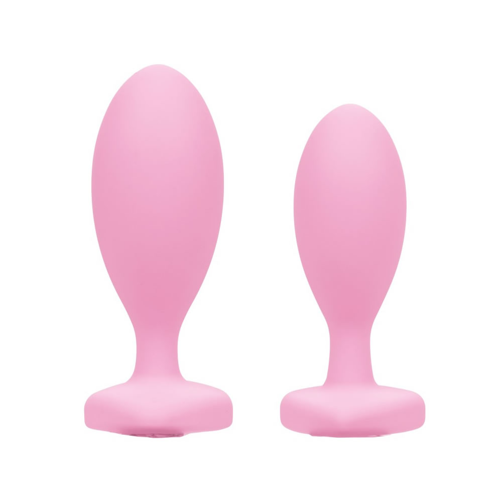 Prepusti se svojim najbolj porednim fantazijam in se odpri vznemirljivi igri na zadnja vrata s tema dvema analnima čepoma. Na igro pripravljen set vsebuje 2 različno velika analna čepa s svetlikajočim diamantkom v bazi, z zaobljeno obliko in trupom iz plišastega silikona. Fleksibilna čepa se vstavita brez truda in nežno izvlečeta. Izdelana sta iz gladkega silikona.
