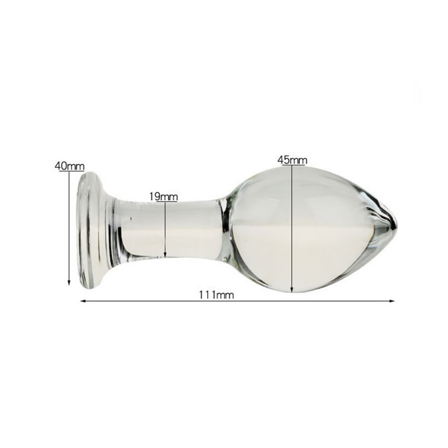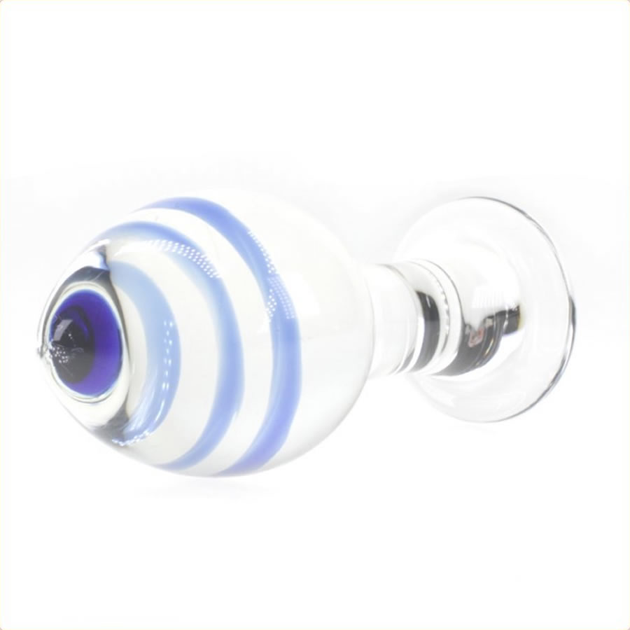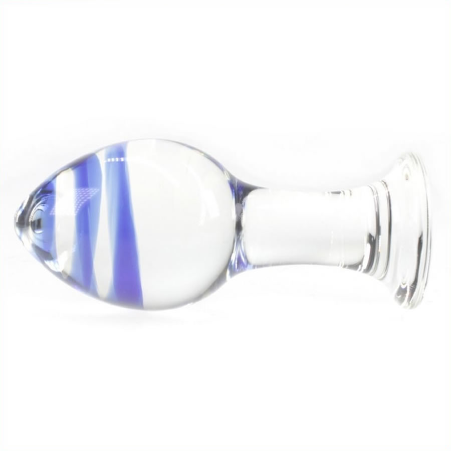 Povsem gladek analni čep je izdelan iz stekla. V notranjosti ima za popestritev vzorček v modri barvi. Njegova gladka površina je odlična za udobno, gladko vstavljanje. Igračke iz stekla so priročne za zabavo pod tušem. Za intenzivnejše občutenje ise lahko poigramo s temperaturnimi razlikami – igračko lahko segrevamo in ohlajamo in si tako ustvarimo povsem novo izkušnjo. Možnosti so neskončne…