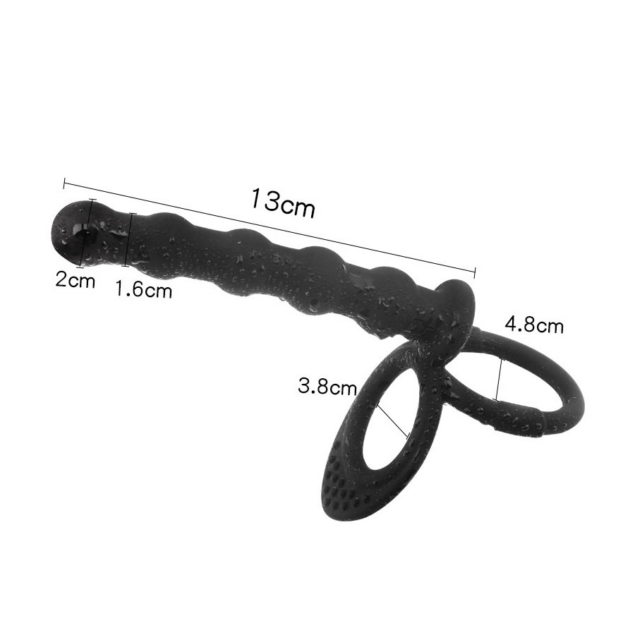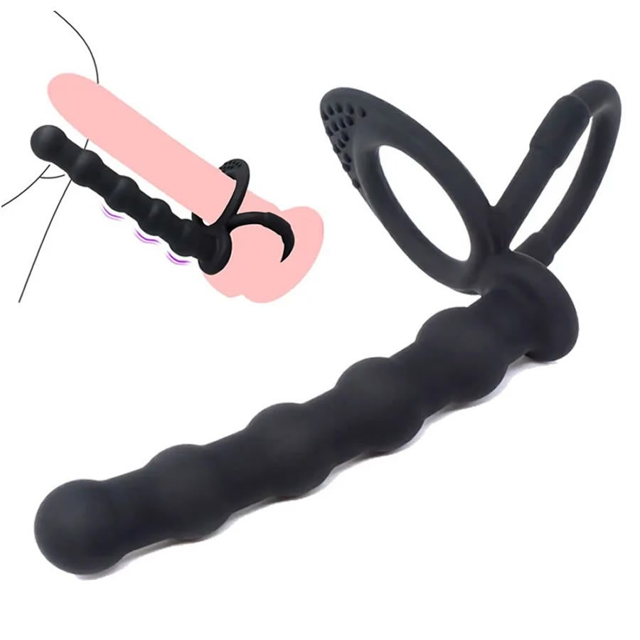 Odlična seksualna igračka za prvo raziskovanje dvojne penetracije! Dildo s kroglicami se preko obročka enostavno natakne na penis, drugi obroč gre preko testisev in zagotovi stabilnost igračke. Poleg vznemirljive dvojne penetracije ta igračka pomaga učvrstiti in podaljšati erekcijo tistemu, ki igračko nosi. Več užitka za oba partnerja!
