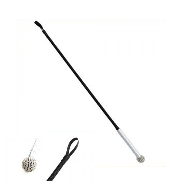 Bič za šeškanje; ročaj biča je ovit s srebrnim lakastim trakom, zaključi se s kroglico oblikovano iz luksuznih svetlikajočih diamantkov.