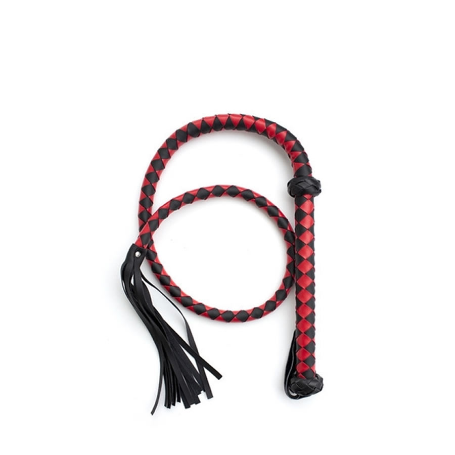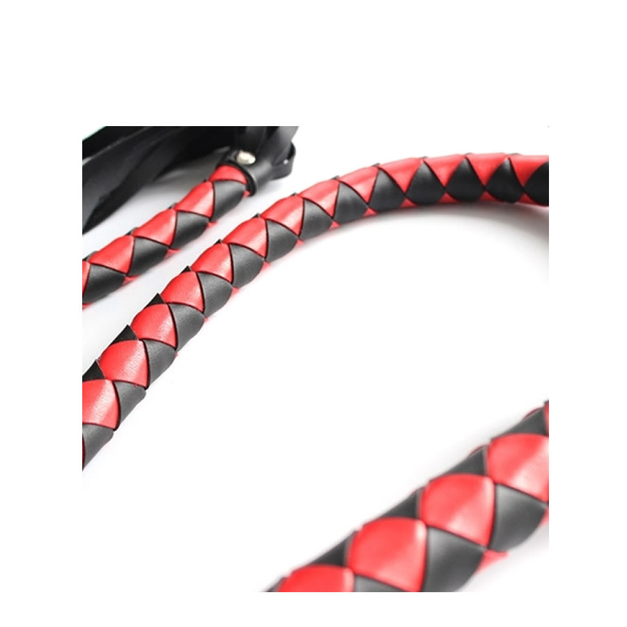 Bič v črno rdeči kombinaciji, z močnim ročajem z zanko za okrog zapestja. Z mehkimi resicami na konici biča.  Debelina biča je 3 – 3,5 cm v premeru.