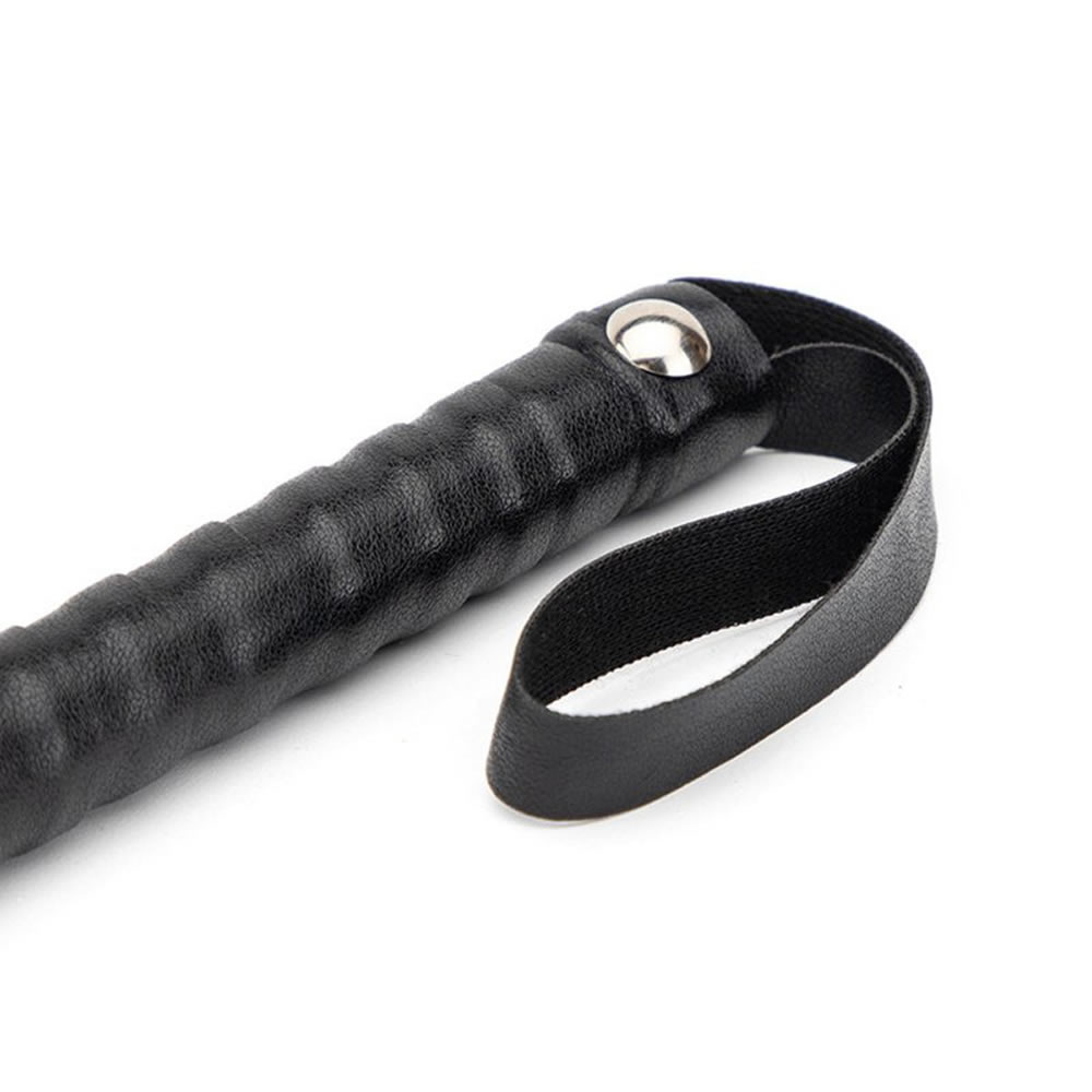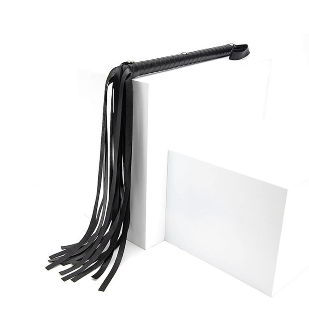 Preprost bič – flogger z mehkimi resicami in ekstra dolgim ročajem. Bič je izdelan iz umetnega usnja. Na ročaju je zanka za obešanje.
