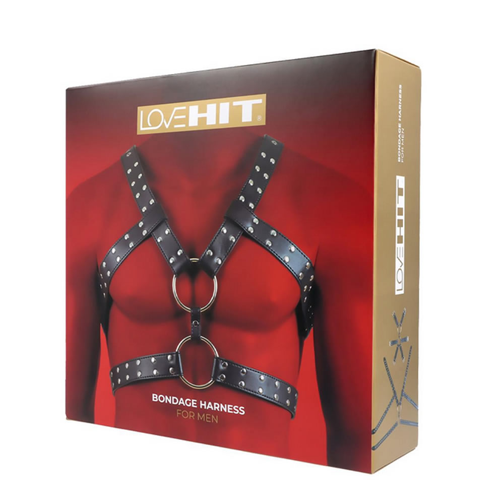 - Popolnoma nastavljiv moški oprsni pas iz veganskega usnja.