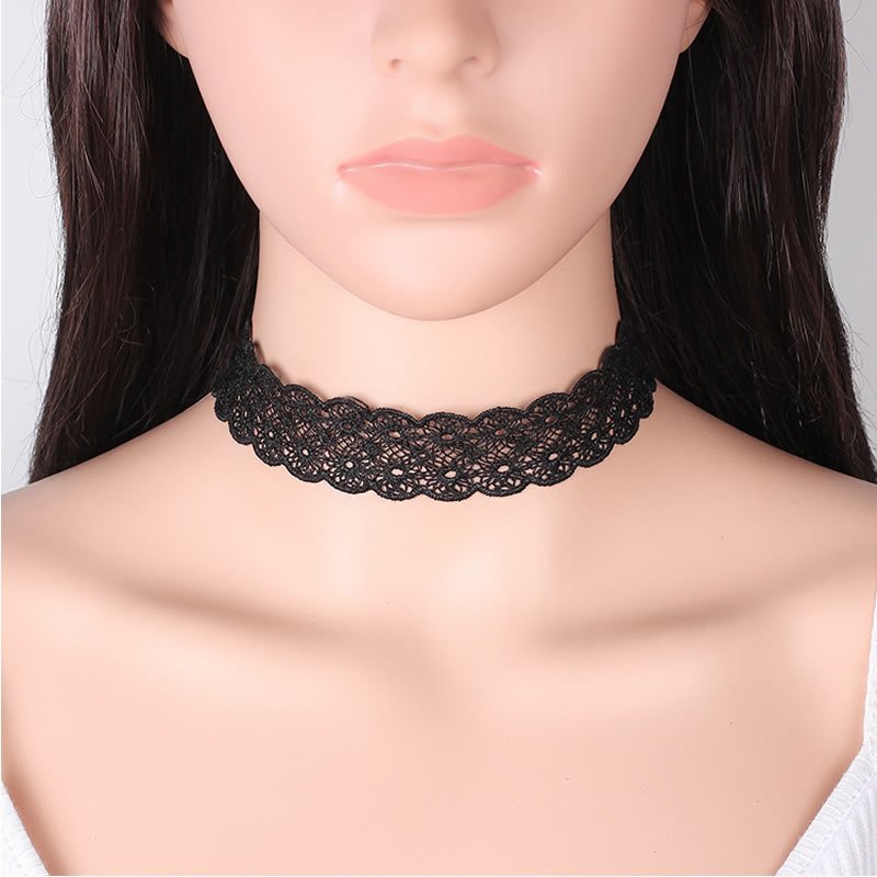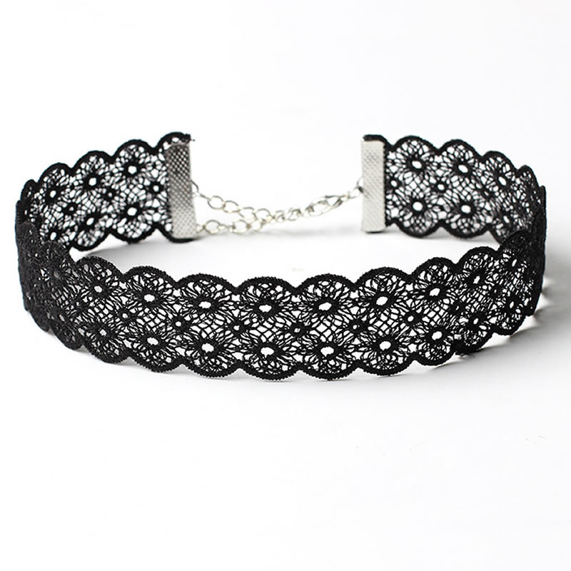 Elegantna ovratnica iz čipke se zaključi s kovinsko verižico preko katere si prilagodimo dolžino, da se nam ovratnica popolnoma prilega