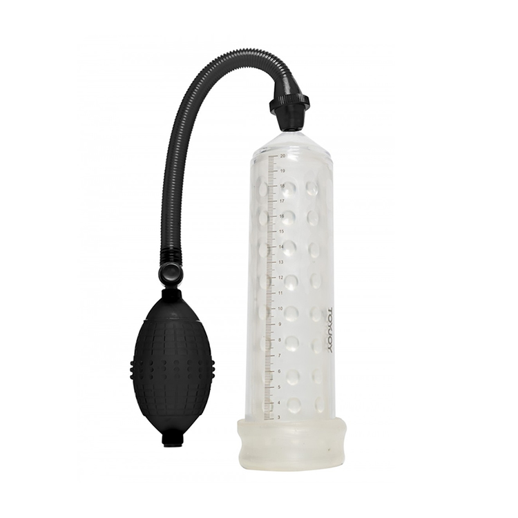Enostavna, vendar učinkovita črpalka zasnovana za njegov užitek. Na cilindru je odtisnjeno merilo s katerim brez težav spremljaš svoj napredek. Z mehkim rokavčkom po celi dolžini črpalke. Za vzpostavitev in učvrstitev erekcije, tudi za podaljšanje penisa.