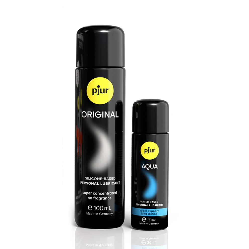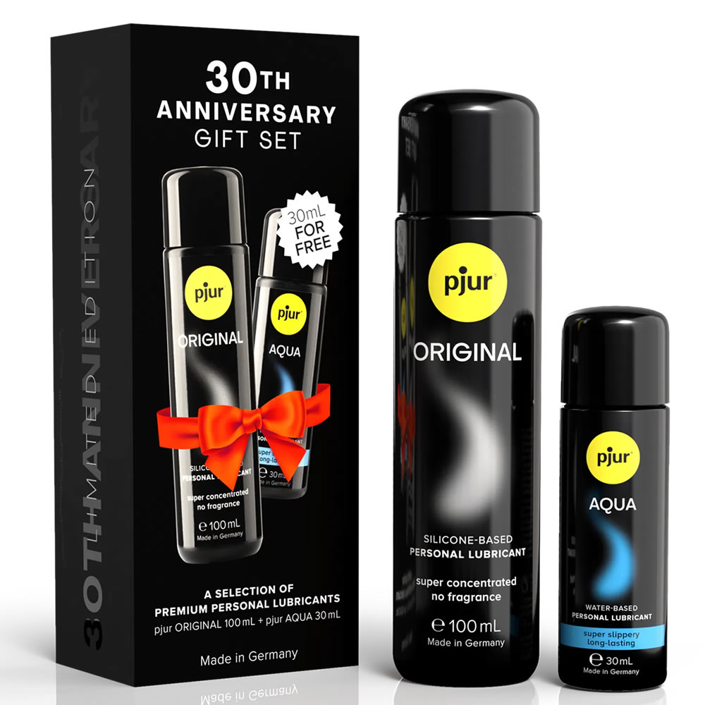 pjur silikonski lubrikant 100 ml in pjur aqua lubrikant na vodni osnovi 30 ml v posebni izdaji darilnega seta ob 30 obletnici obstoja