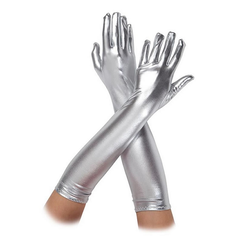 Dolge rokavice iz sijočega wetlooka srebrne