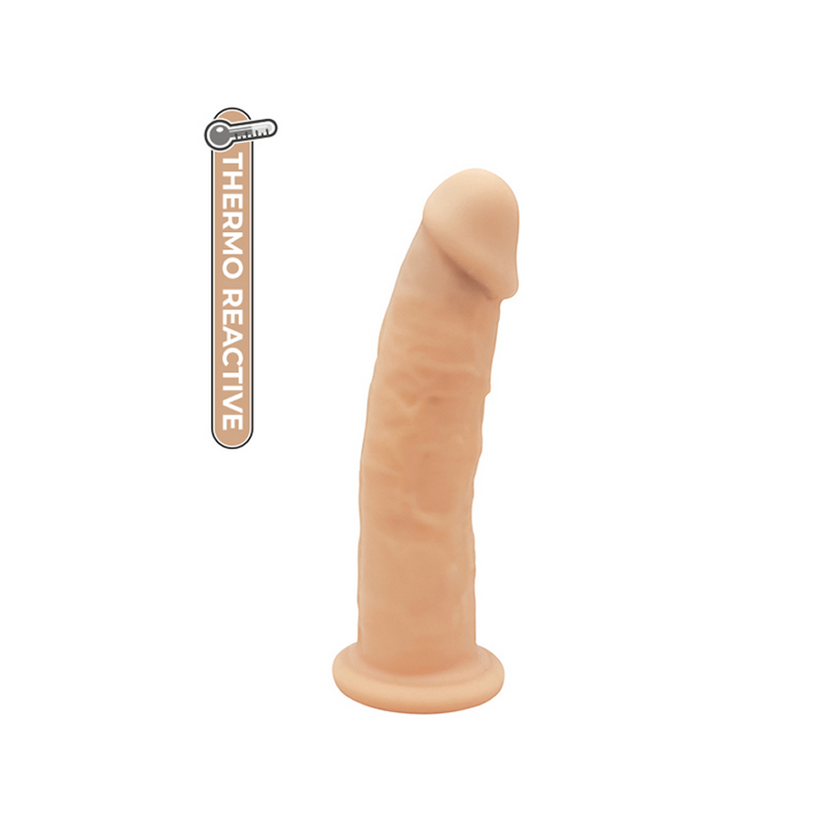 Povsem nov način oblikovanja seksualnih igračk iz silikona! Dildo je izdelan iz termo-odzivnega silikona – mehkejši, ko je topel, trši, ko je hladen. Notranjost igračke je napolnjena s silexpanom, ki igrački zagotavlja več čvrstosti in večjo fleksibilnost. Z močno bazo, da se prisesa na gladko površino.