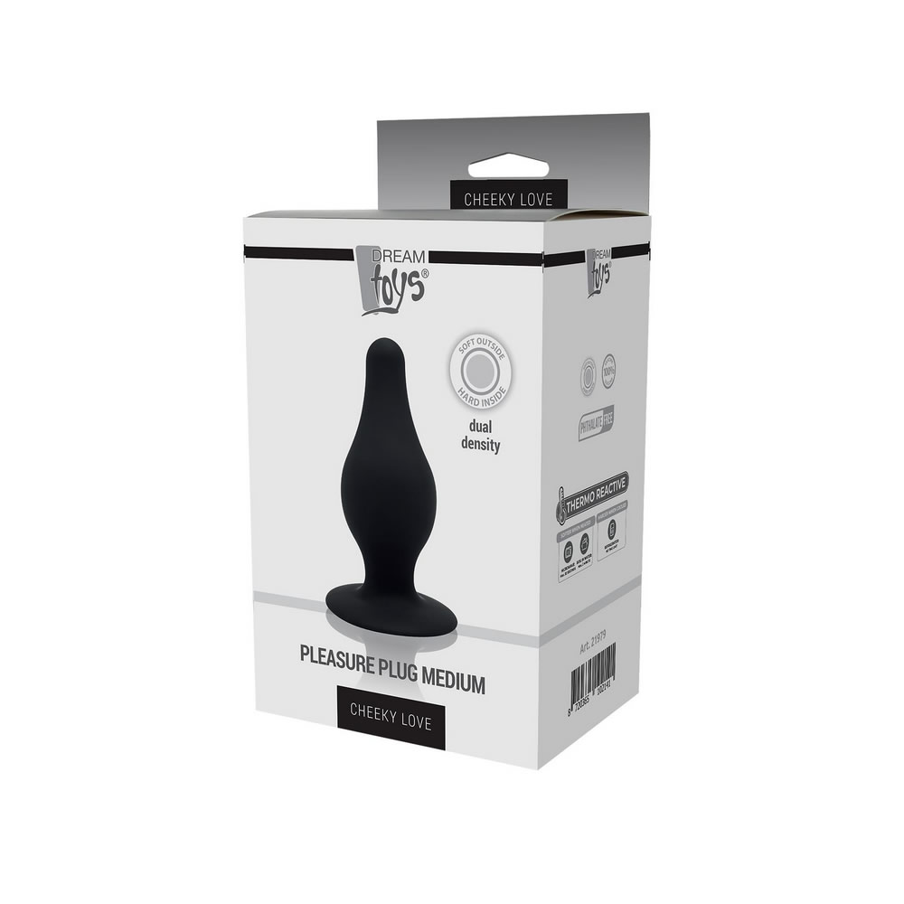 Cheeky love Dual Density Pleasure plug je silikonski analni čep z mehko površino in dvojno čvrstostjo. Čvrsto notranje jedro je zapolnjeno z SILEXPAN® materialom, ki izdelku daje izjemno realističen občutek in neprimerljivo izkušnjo užitka. Patentirana formula SILEXPAN® zagotavlja boljšo čvrstost in večjo fleksibilnosti. Ravno tako naredi izdelek termo reaktiven – postane trši, ko se ohladi in mehkejši, ko se segreje. Vakumska baza se čvrsto oprime gladke površine. Ta analni čep odlikuje zelo kratek, a razširjen trup.