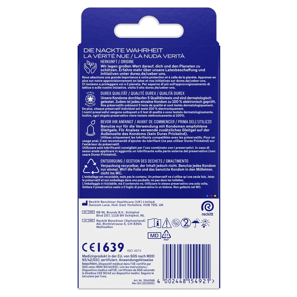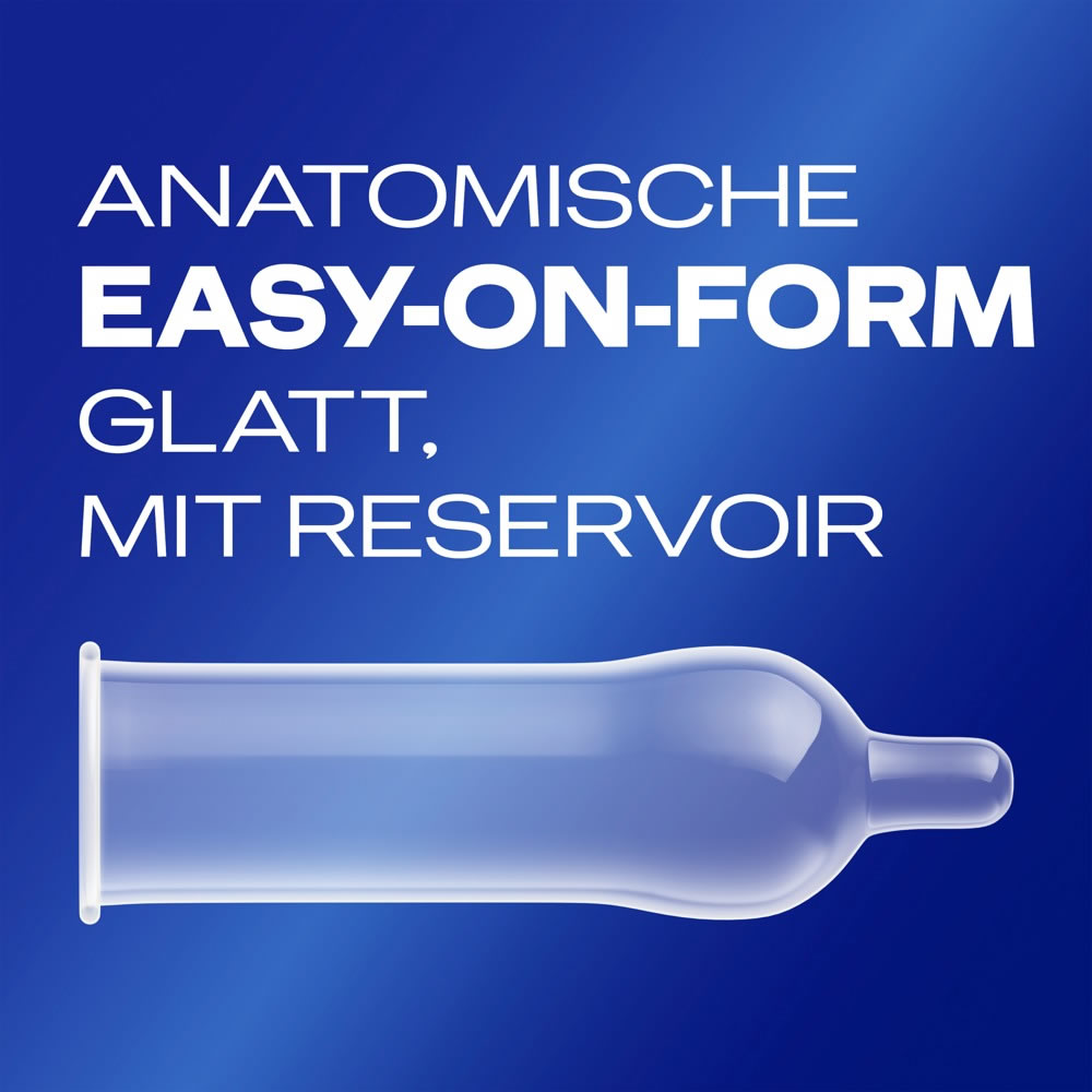 Transparentni, anatomsko oblikovani kondomi z easy-on obliko za popolno prileganje. Enostavneje se tudi odvijejo dol. Poseben proizvodni proces jim da prijeten vonj. Ekstra navlaženi, z rezervoarjem. Dermatološko testirani.