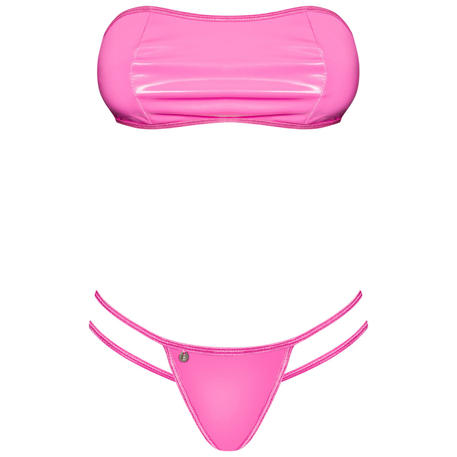 Kar te čaka v tem roza kompletu je nekaj povsem izven tvojih pričakovanj! Če misliš, da je črna tista, ki te naredi seksi, boš kmalu spremenila mnenje. Preizkusi ta komplet v roza barvi in imitaciji lateksa. Oh, kako boš zadovoljena!