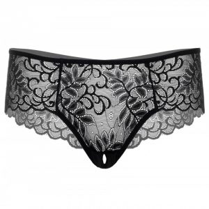 Ženske hlačke so izdelane iz mehke, koketne čipke, z diskretnim razporkom v razkoraku.