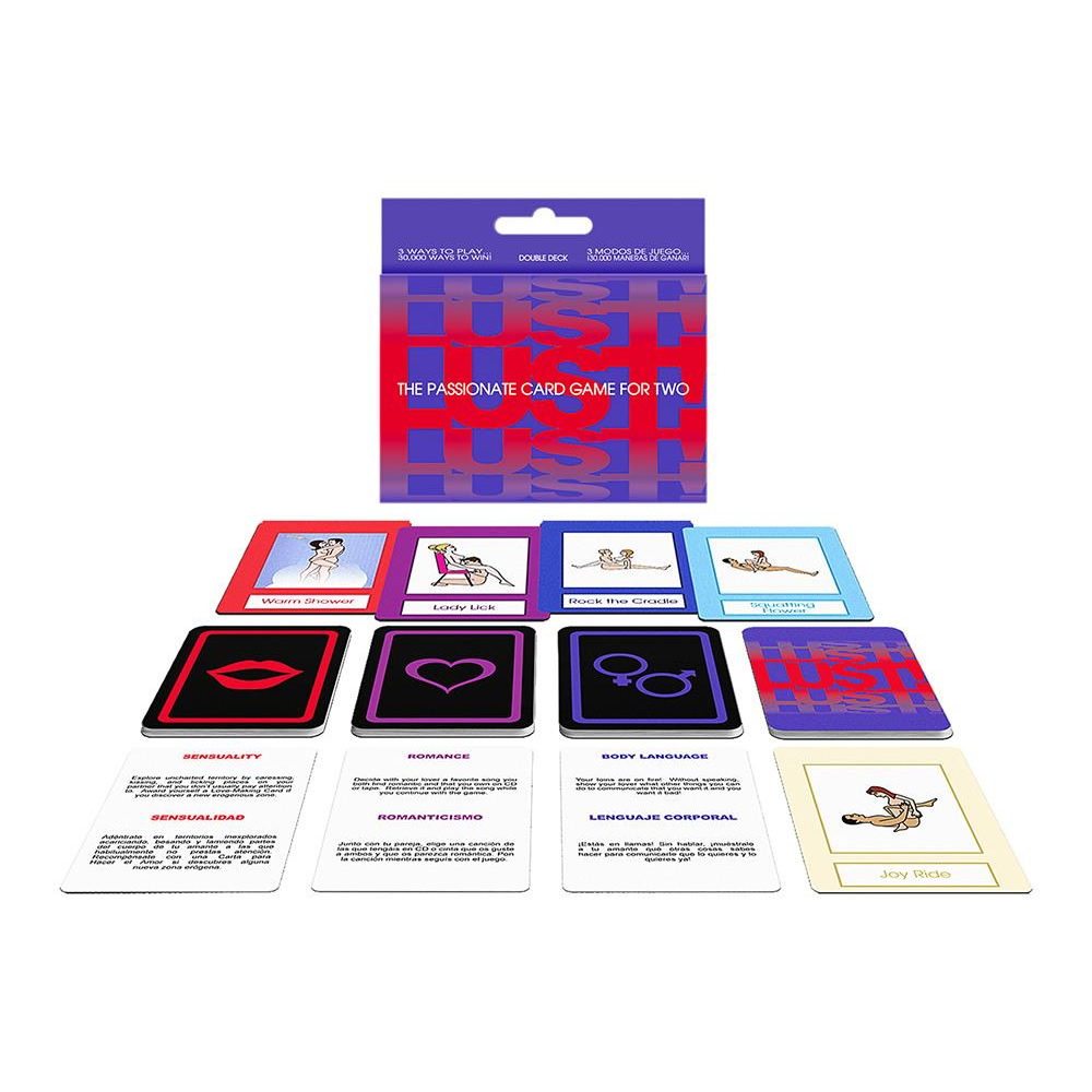 Lust! je igra za ljubimce, ki vam omogoča raziskovanje tako romantične kot fizične intimnosti z vašim ljubimcem. Karte za ljubezensko igro eksplicitno ponazarjajo bodisi predigro bodisi spolni položaj. Vi in vaš ljubimec uporabite te karte za gradnjo in dogovor o spolni fantaziji.
