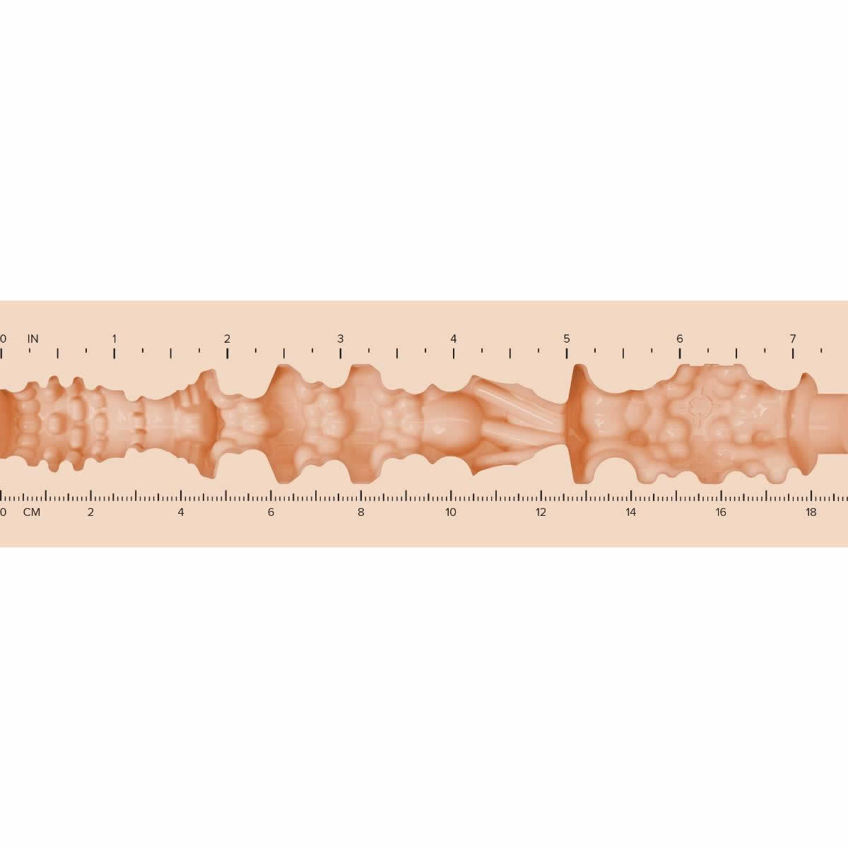 Notranjost je izdelana iz visokokakovostnega, koži podobnega materiala, ki je na otip mehak in prožen. To omogoča, da se rokav udobno oblikuje okoli telesa in prispeva k naravni izkušnji. Notranji vzorci zagotavljajo različne občutke, od subtilne stimulacije do bolj izrazitih pritiskovnih točk, zaradi česar je vsaka seansa drugačna.