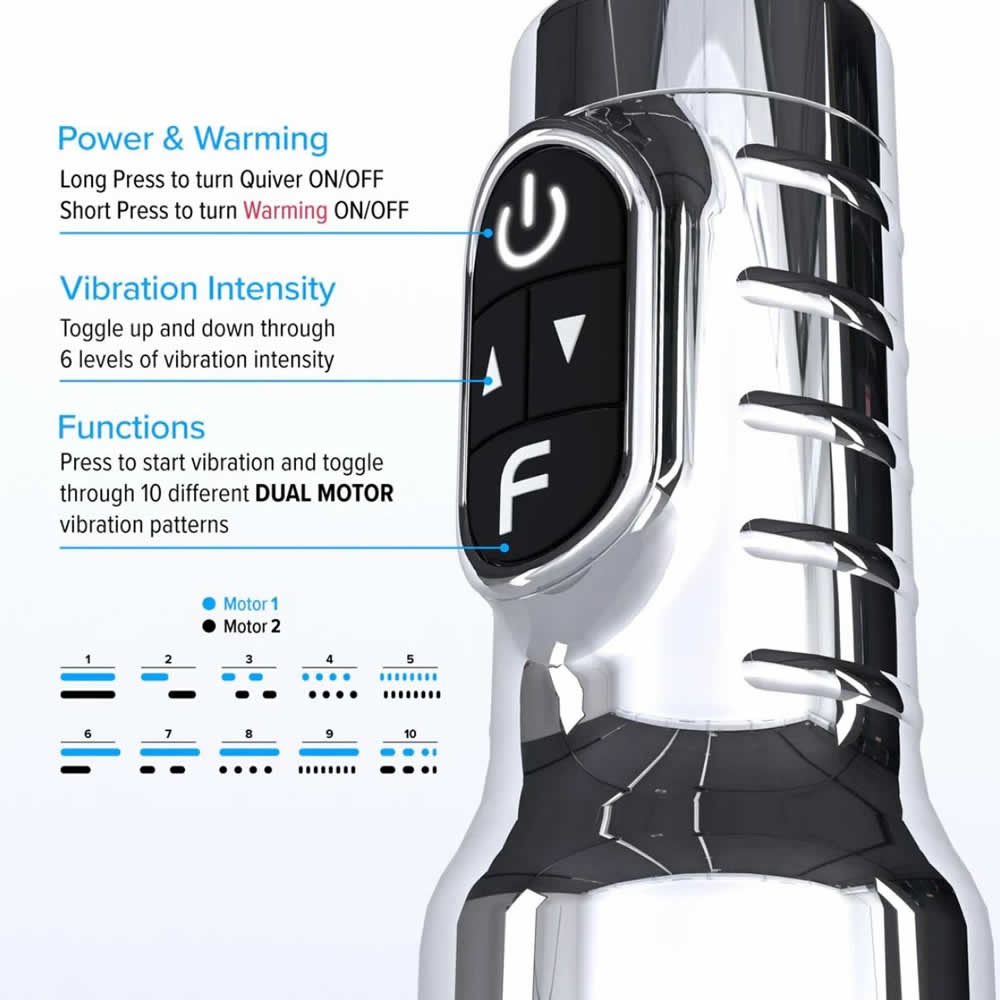 Masturbator z dvema motorjema, ki ustvarjata globoke, ritmične vibracije v 10 vzorcih in 6 jakostih.