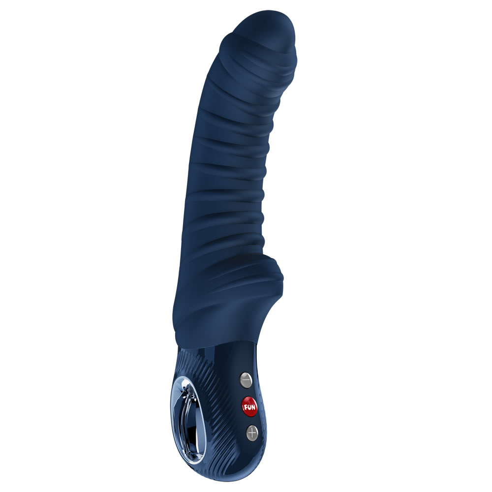 Silikonski vibrator z intenzivnimi rebri na površini, izdelan za stimulacijo klitorisa, erogenih točk, presredka, vaginalno in analno penetracijo.