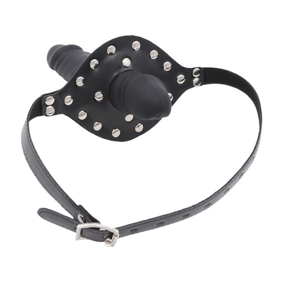 Gag ima iz umetnega usnja izdelano oporo in jermen za pričvrstitev. Jermen se zapenja s kovinsko zaponko. Gag ima obliko penisa, dolg je 5,5 cm, premer 3,8 cm. Zunanji dildo je ravno tako v oboliki penisa, dolg je 13 cm, premer 3,8 cm.