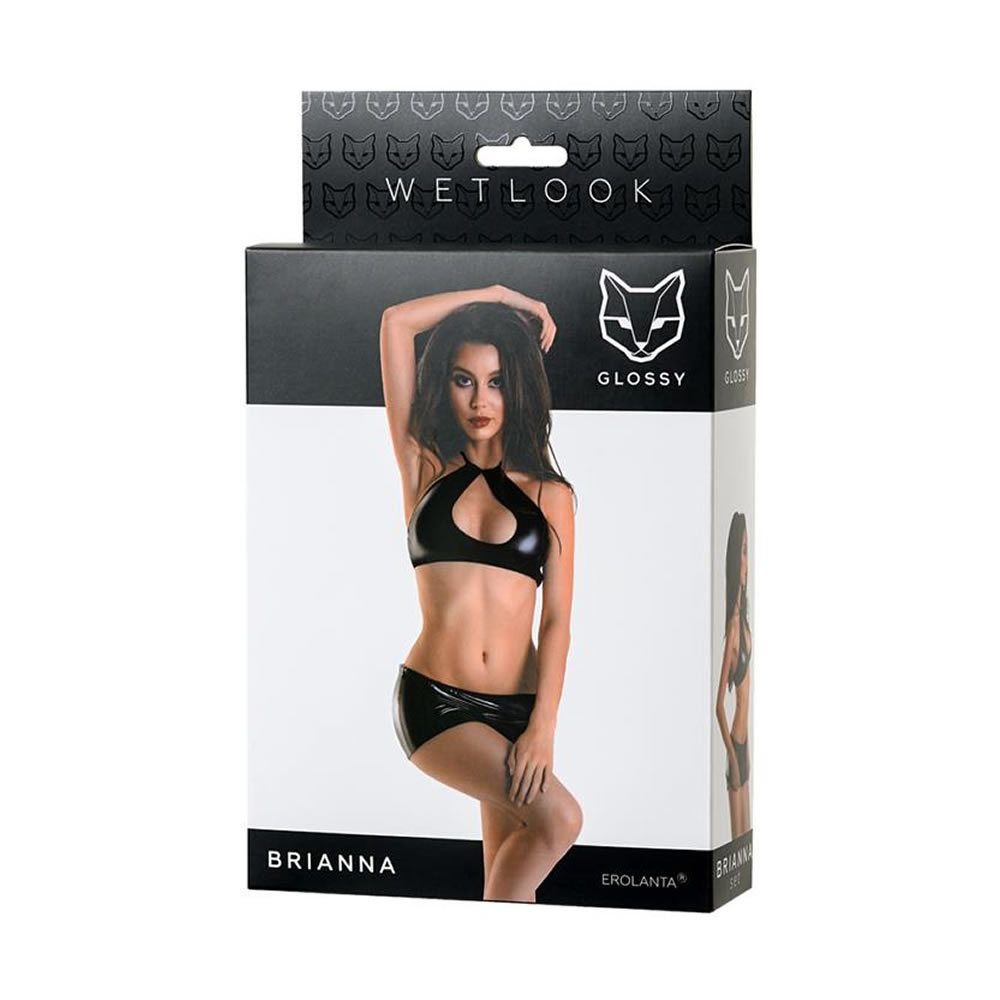 Komplet Brianna je sijoč črn komplet iz materiala Wetlook. Top s seksi izrezom bo ustvaril učinek push-up na prsih. Mikro mini krilo bo vzpodbudilo domišljijo tvojega partnerja.