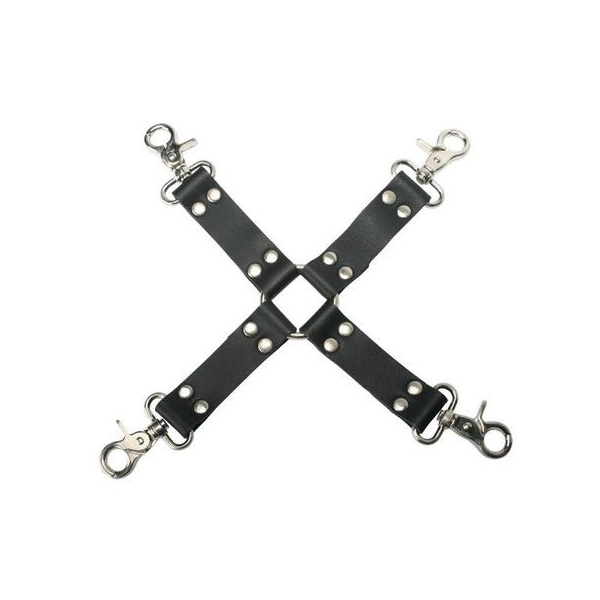 Križ za pripenjanje lisic ali vrvi, izdelan iz umetnega usnja. S 4 kovinskimi karabini.