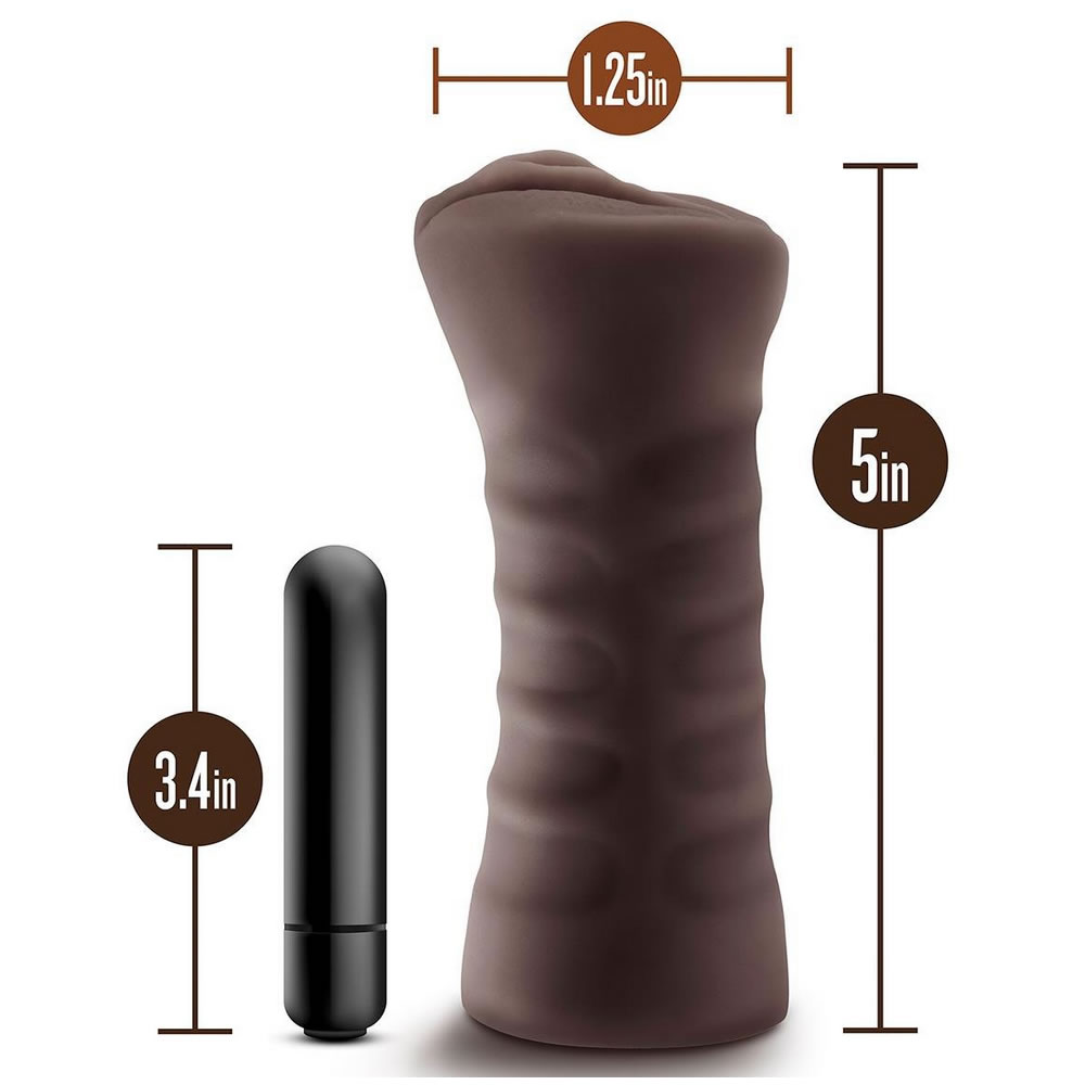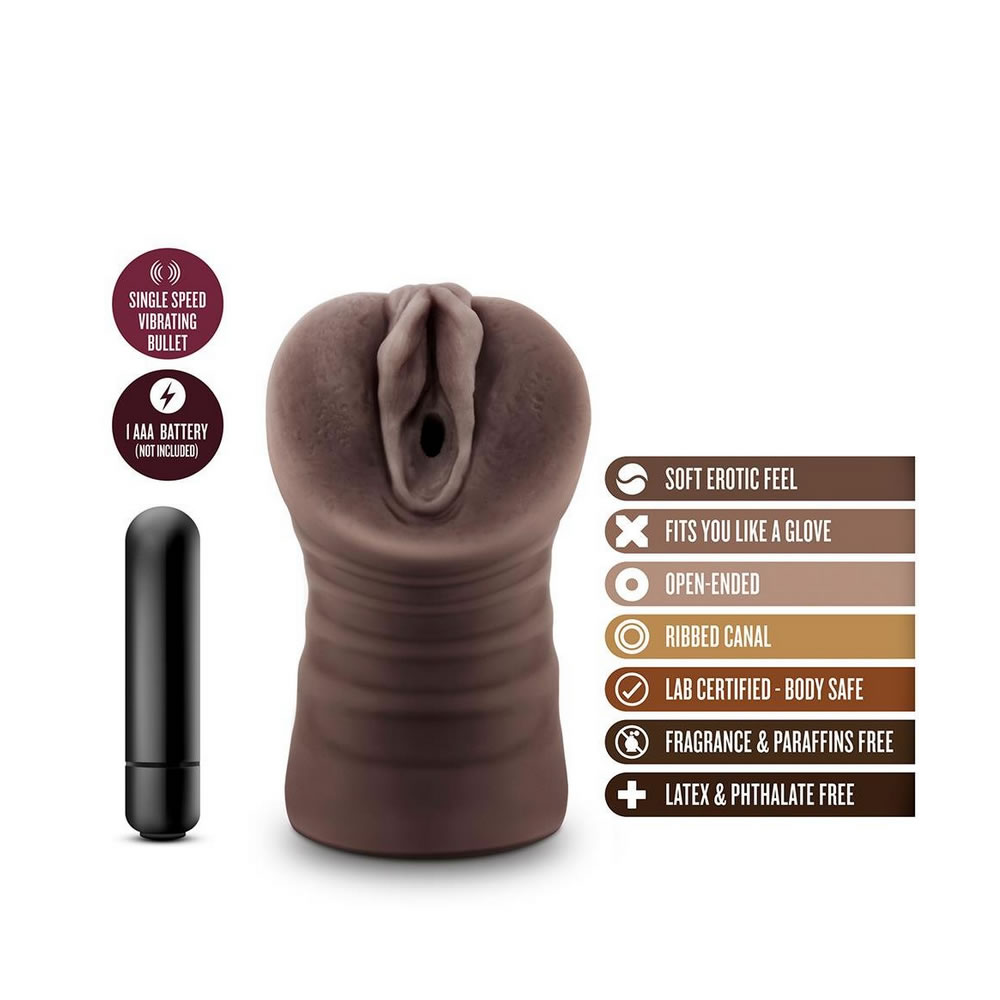 Realistično oblikovan masturbator iz koži podobnega materiala za čim bolj realistično izkušnjo. S priloženim vibratorjem.