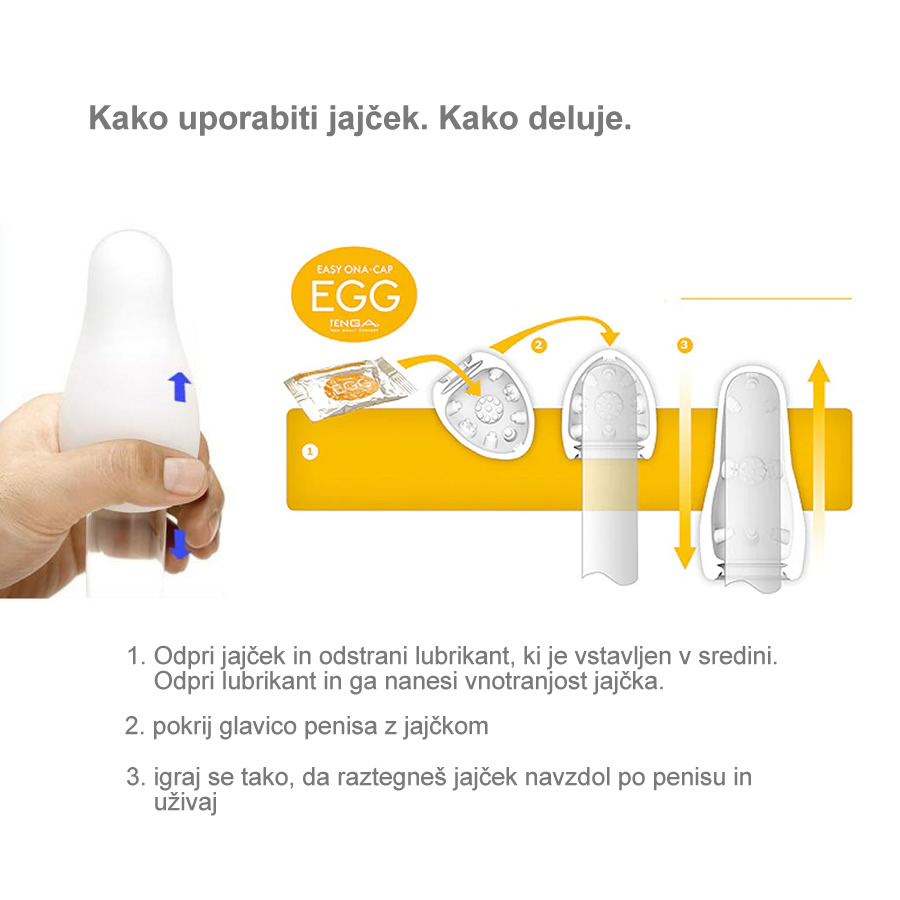 Jajček Tenga je mini masturbator za moške. Izdelan je iz mehkega, vdajajočega se, elastičnega silikona, ki ima v notranjosti strukturo, da zagotovi izjemno stimulacijo.