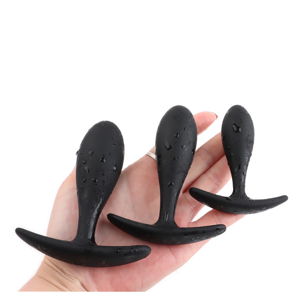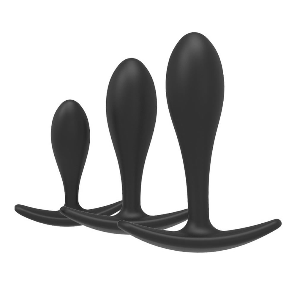 Set treh analnih čepov izdelanih iz telesu varnega silikona. Čepi so prava izbira za trening in raziskovanje analnih občutkov.