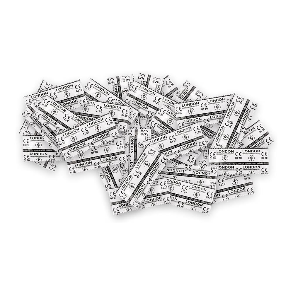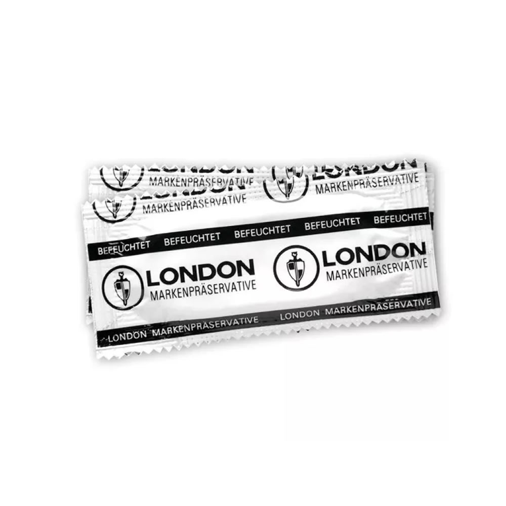 Kondomi London so transparentni kondomi, ki nudijo zanesljivo zaščito in varen občutek med seksom. Kondomi so izdelani iz naravnega, prozornega lateksa, so navlaženi z lubrikantom, gladki po površini, z rezervoarjem.