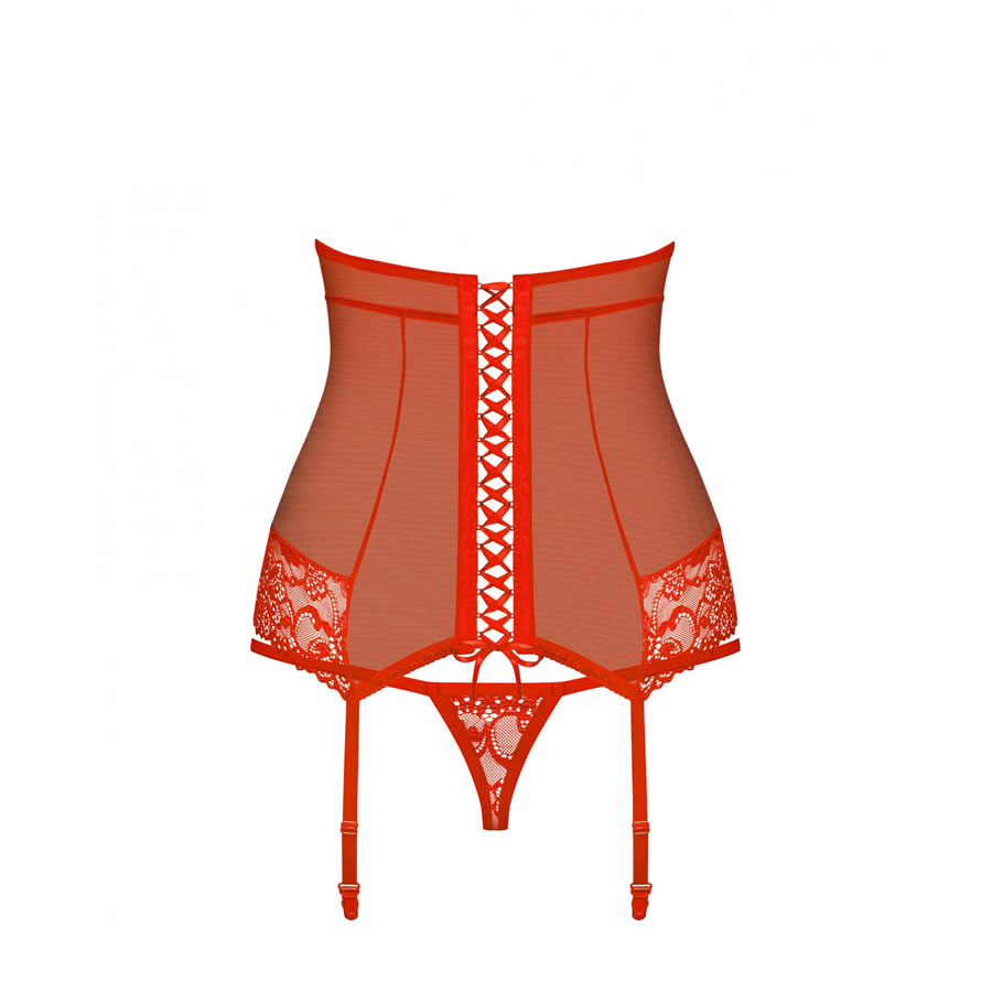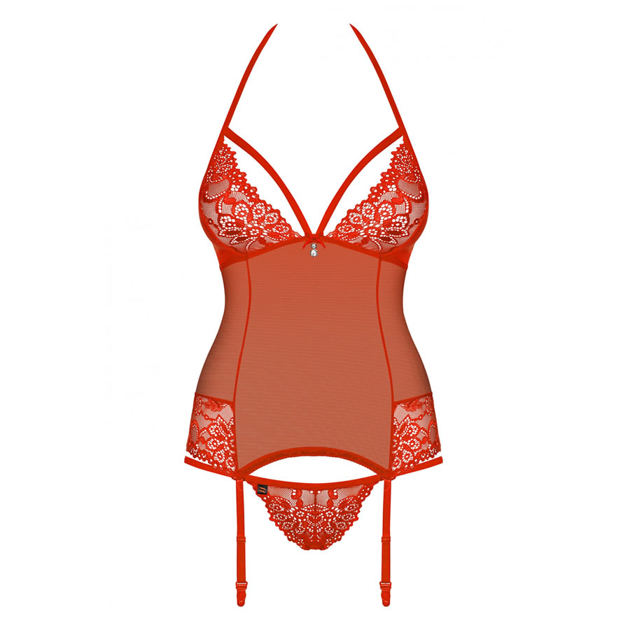 Rdeča prosojna mrežica, šarmantna čipka, zapeljivi trakovi in koketno zavezovanje. Da, ta mehak korzet je preprosto fantastičen!
