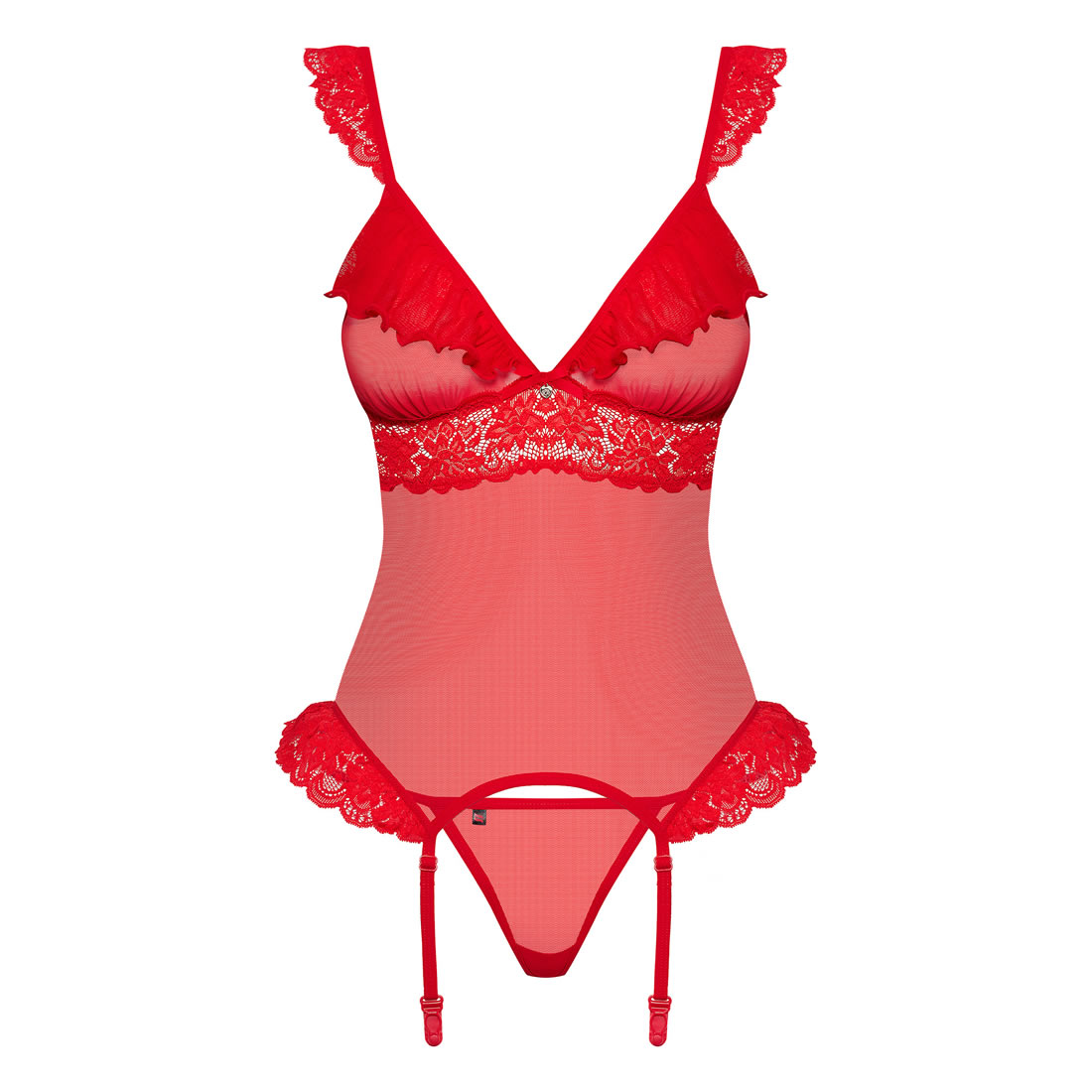 Do sedaj že veš, da je rdeča barva ljubezni. Pa veš, da sta čipka in naborki dobri za vzdušje? To boš spoznala, ko boš oblekla ta čudovit korzet! Ne čakaj. Privošči si ga in prični z odštevanjem vroči trenutki prihajajo!