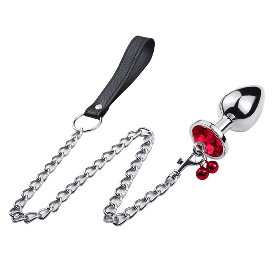 Analni čep izdelan iz prijetno gladke kovine se razširi v nizko bazo okrašeno s turkizno modrim diamantkom. Poleg diamantka je na bazo pripet še zvonček, priložen pa je tudi povodec dolžine 75 cm.