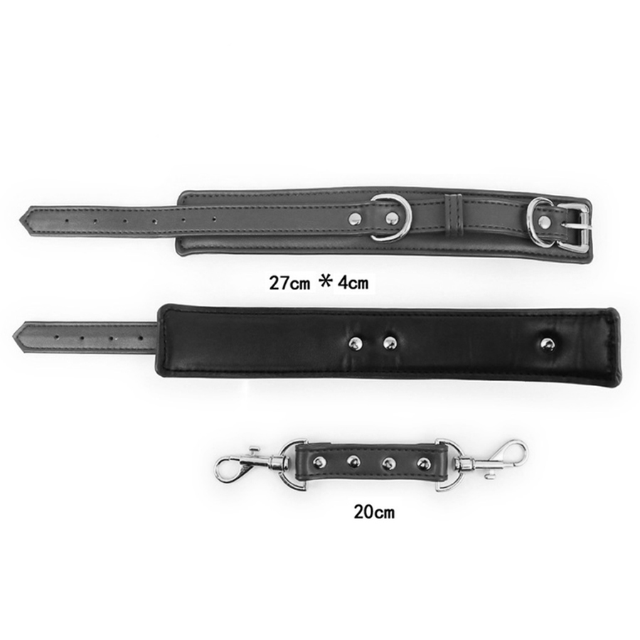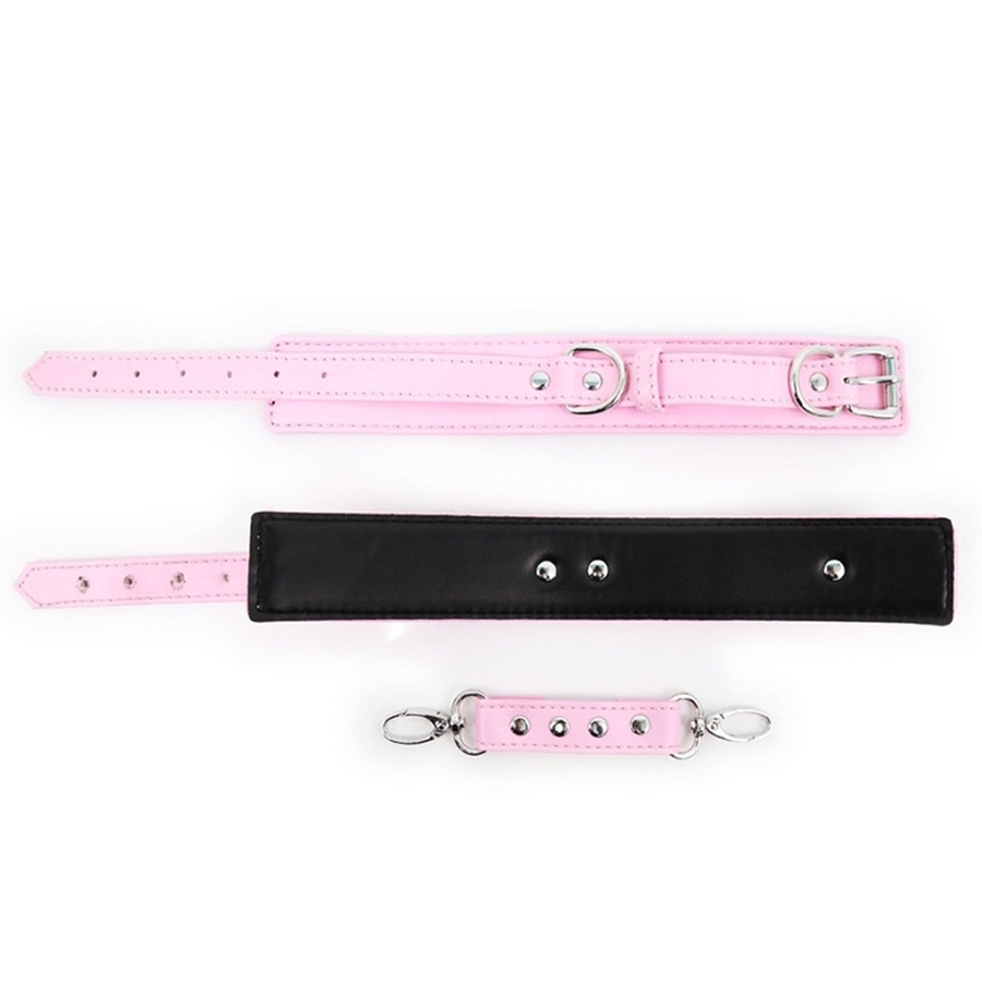Pin Lock so mehke lisice, ki se zapenjajo s kovinsko zaponko. So udobne in ne poškodujejo kože. Dolžina je povsem prilagodljiva, da ustreza vsem obsegom. Lisice so med seboj povezane s karabinom na usnjenem paščku.