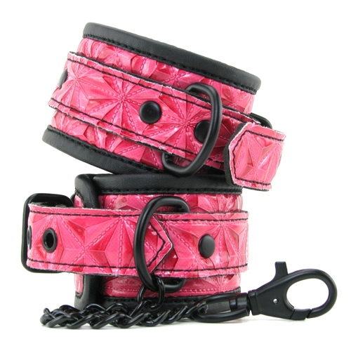 Body poreden z lisicami iz kolekcije Sinful! Lisice so dizajnirane iz umetnega usnja, ki prekriva mehak, visokokvaliteten neopren – za maksimalno udobje. S kovinsko zaponko si prilagodiš obseg in lisice z verigo povežeš med seboj.