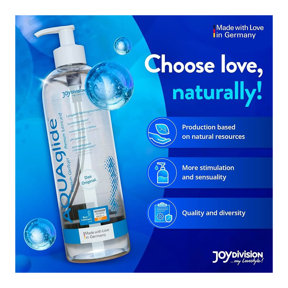 Aqua glide je gostejši, bolj masten vlažilni gel, izdelan na vodni osnovi, pH nevtralen, brez vonja in okusa. Gel je primeren za vse vrste potrebnega vlaženja, tudi za vlaženje kondomov, izdelkov iz lateksa in izdelkov iz silikona.Gel je bil izdelan za uporabo pri oralnem odnosu zato ne pušča neprijetnega okusa.