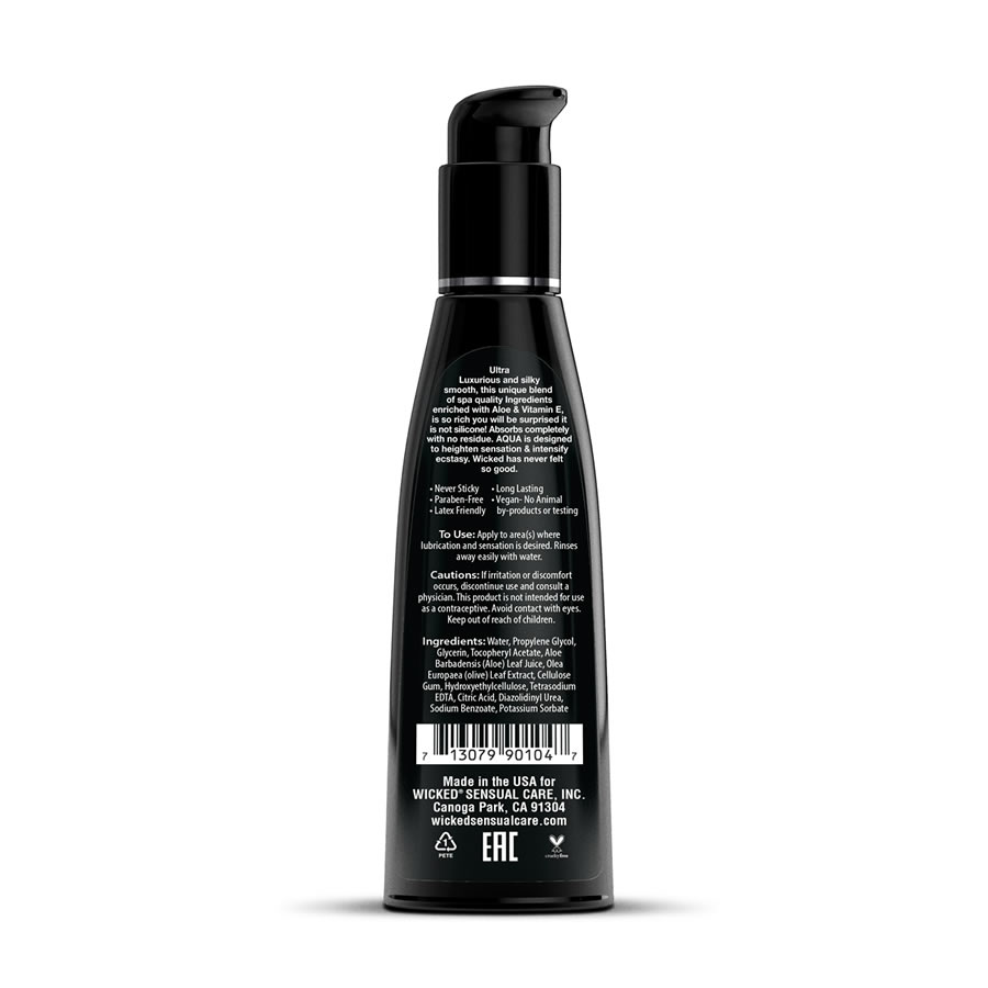Ultra luksuzen in svileno gladek z edinstveno kombinacijo kakovostnih sestavin, obogaten z aloe vero in vitaminom E, je tako bogat, da boš presenečen, da ni silikonski! Se popolnoma absorbira, brez ostankov. AQUA je izdelan, da izboljša vzburjenje & intenzivira ekstazo. “Wicked” se še nikoli ni čutilo tako dobro.