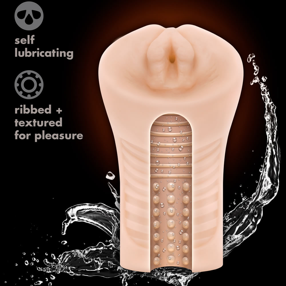 Sem Annabella in sem pripravljena, da ti nudim užitek in vzbudim tvojo domišljijo. Dodaj malo vode ali sline in se razveseli mojih samovlažilnih zmožnosti, ko se ti bom prilegala kot rokavica. Z mojim narebrenim in zrnastim kanalom nudim širok nabor občutkov, sem pa tudi odprta na koncu za enostavno čiščenje. Pridem z vibracijskim nabojem z močnim vibriranjem med igro. Izdelana sem iz ultra-mehkega X5™ materiala, poleg tega ne vsebujem ftalatov, parafina in lateksa in izgledam in se občutim bolje kot prava stvar.