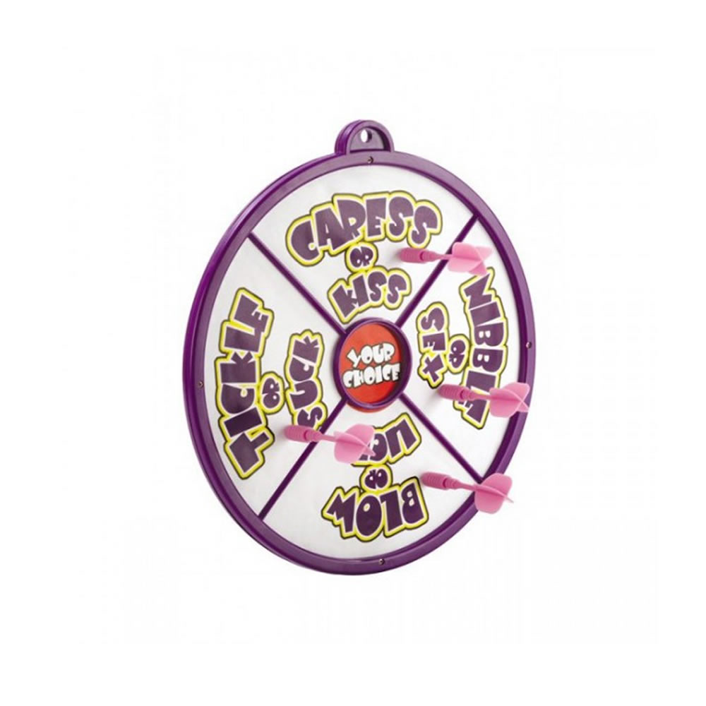 Dvostranski magnetni pikado z 10 seksi nalogami za zaljubljene.  Ena stran igralne ploskve ima dele telesa, na drugi strani so naloge.