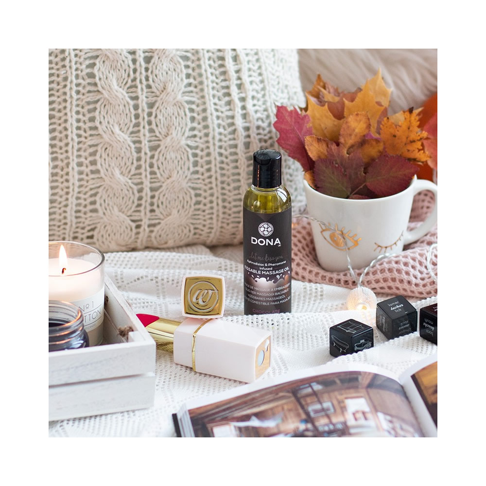 Pretvori svojega ljubimca v senzualen desert z Dona Kissable masažnim oljem. Vabi svoje brbončice z dekadentnim okusom čokoladnega moussa medtem, ko s poljubi prekineš napetost.