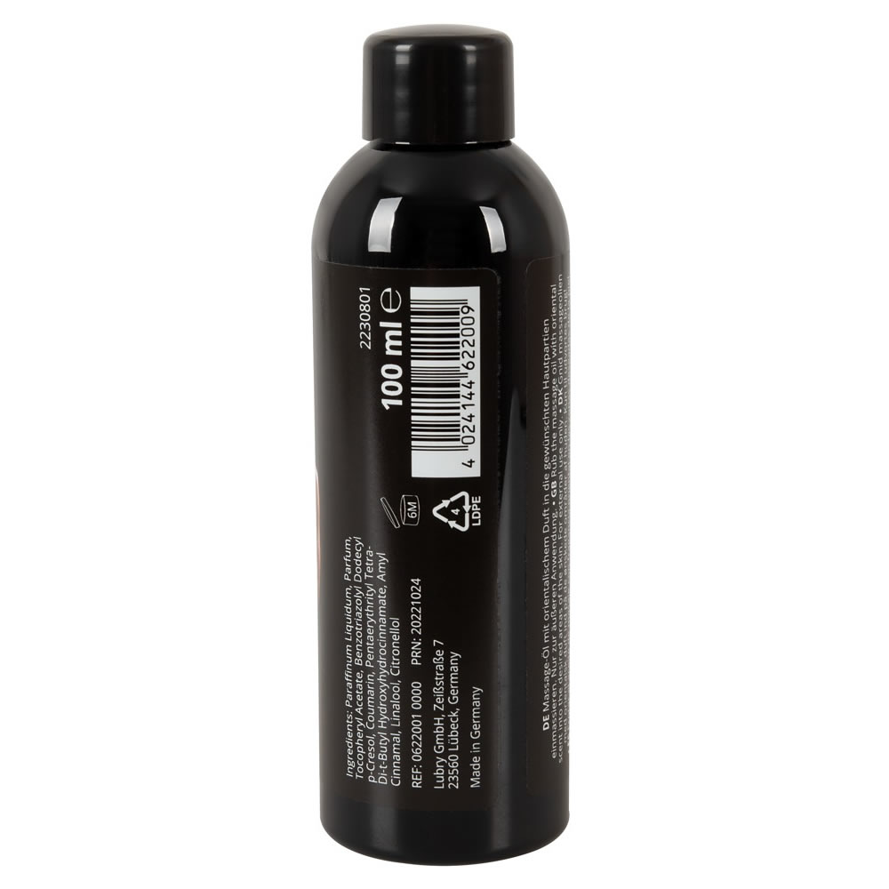Visokokvalitetno erotično masažno olje z oljem jojobe in dolgo časa trajajočim vlaženjem. Z originalnim orientalskim vonjem, ki lahko pomaga ljudem k sprostitvi.