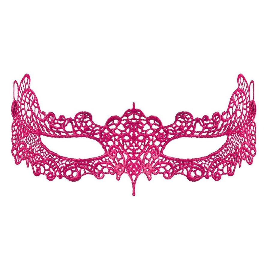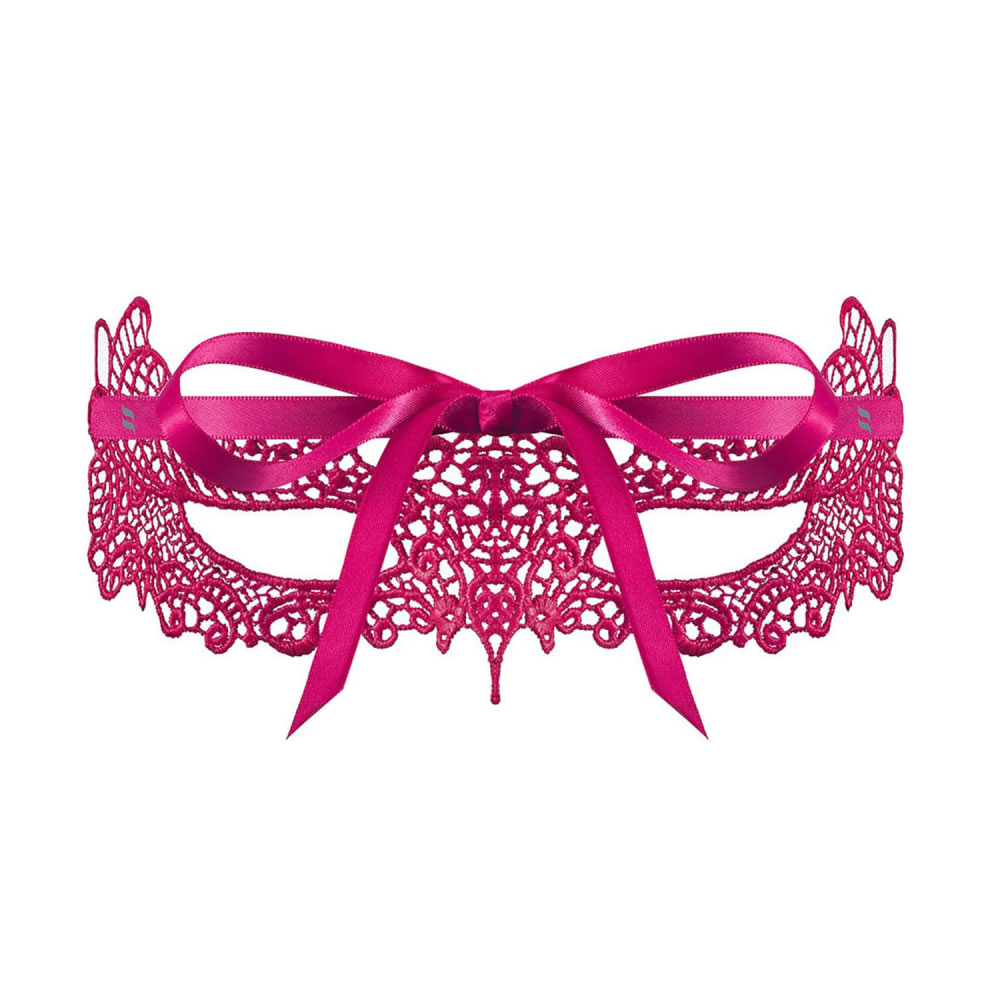 Čudovita, seksi  maska za oči izdelana iz vezene čipke, v neon roza barvi. Maska se okrog glave pritrdi s satenastim trakom.