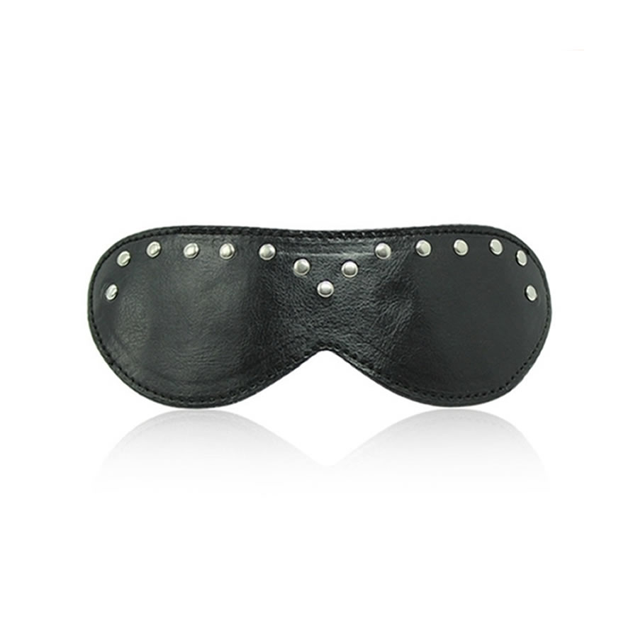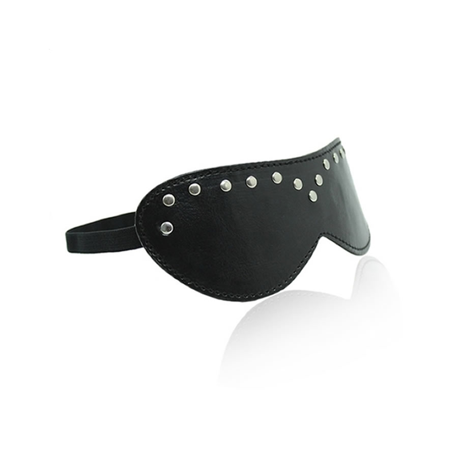 Maska za oči iz umetnega usnja. Na notranji strani je semiš, da je maska bolj udobna. Za pričvrstitev je dodan elastičen trak. Maska je ob zgornjem robu dekorirana s srebrnimi gumbi.