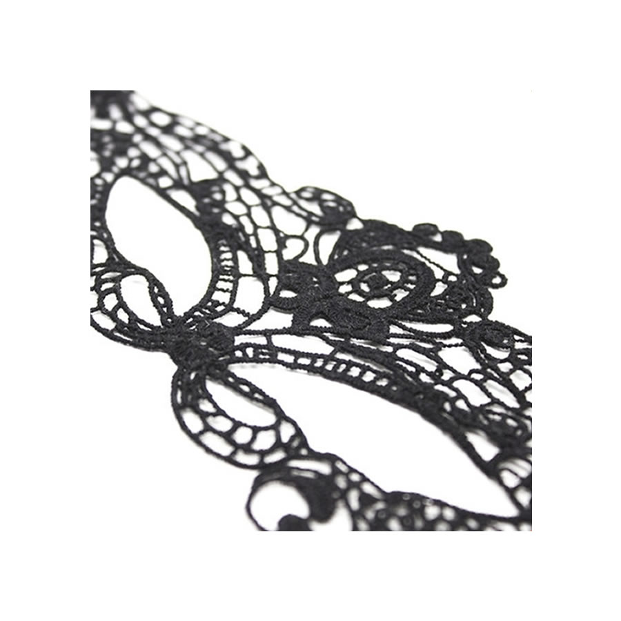 Elegantna, karnevalska maska v beneškem slogu, izdelana iz vezenega mehkega materiala, s satenastim paščkom za pričvrstitev okrog glave.