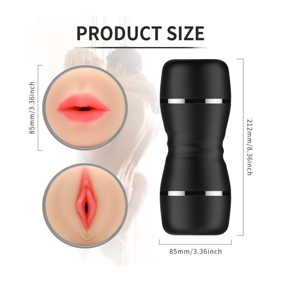 Potovalna velikost masturbatorja z vaginalnim in oralnim vhodom za hitro in raznoliko potešitev v vsakem trenutku. Rokav masturbatorja je iz mehkega realističnega materiala, notranjost pa ima bogato strukturo za še več stimulacije. Srednji del ohišja masturbatorja lahko stisneš in tako povečaš stisk okrog penisa.