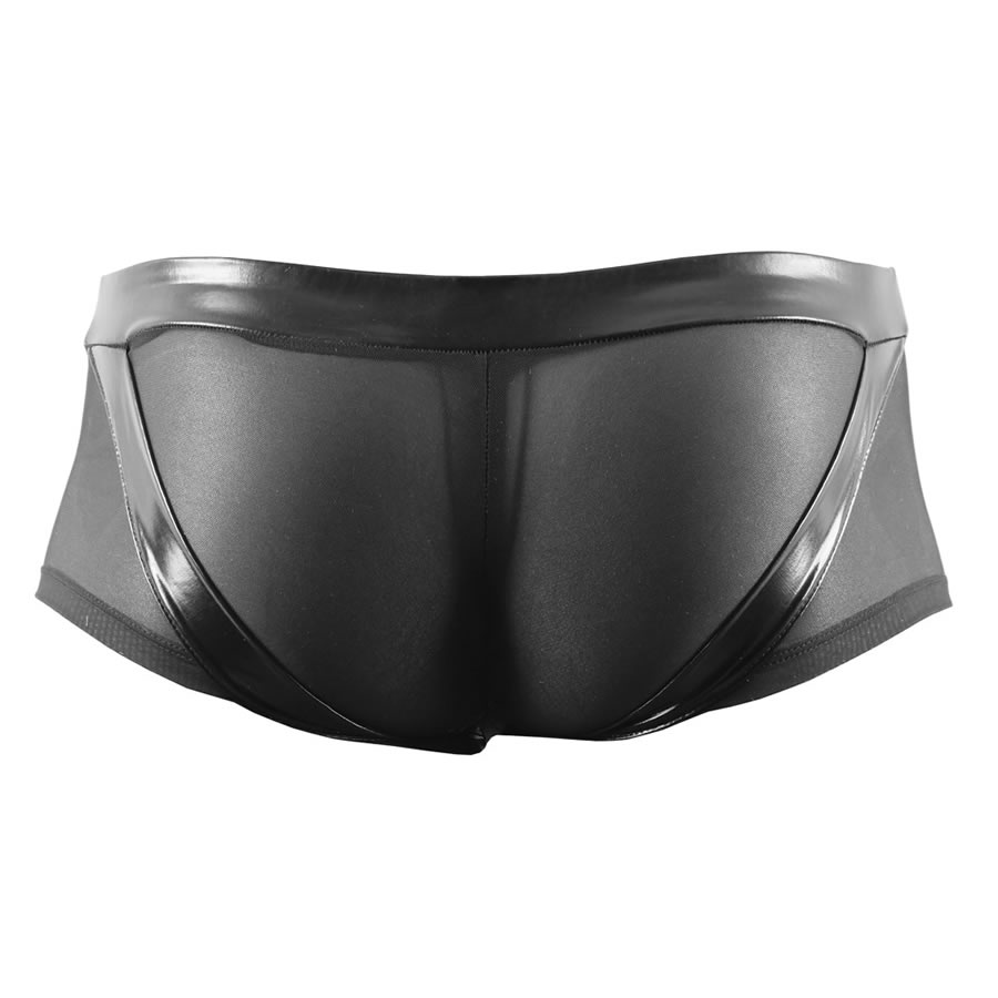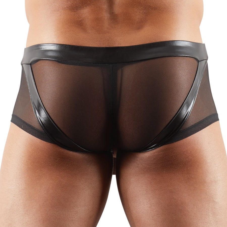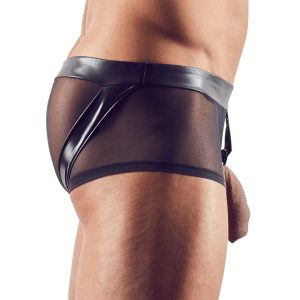 Modne moške bokserke izdelane iz mehke elastične prosojne mrežice, z dodanimi všitki iz sijočega wetlooka. Z obročkom za penis, premer obročka je 5 cm.