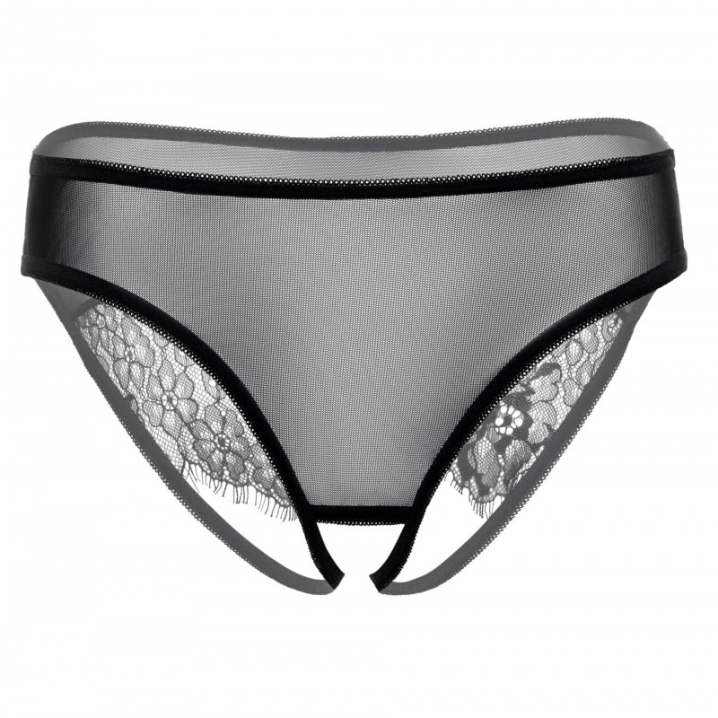 Ženske hlačke so izdelane iz mehke čipke, in trakoma, da izpostavita hlebčke zadnjice. Z diskretnim razporkom v razkoraku.