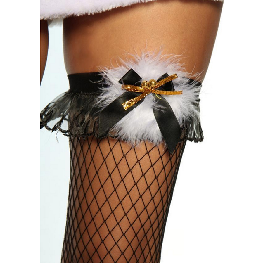 Nogavice so iz elastične mrežice, na stegnih se zaključijo s širokim čipkastim pasom s perjem in zvončkom. Nogavice se odlično podajo k božičnemu kostumu.