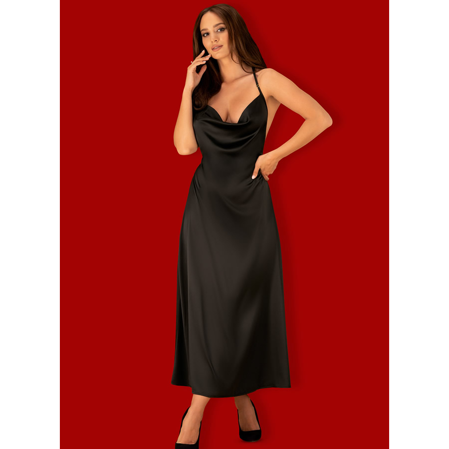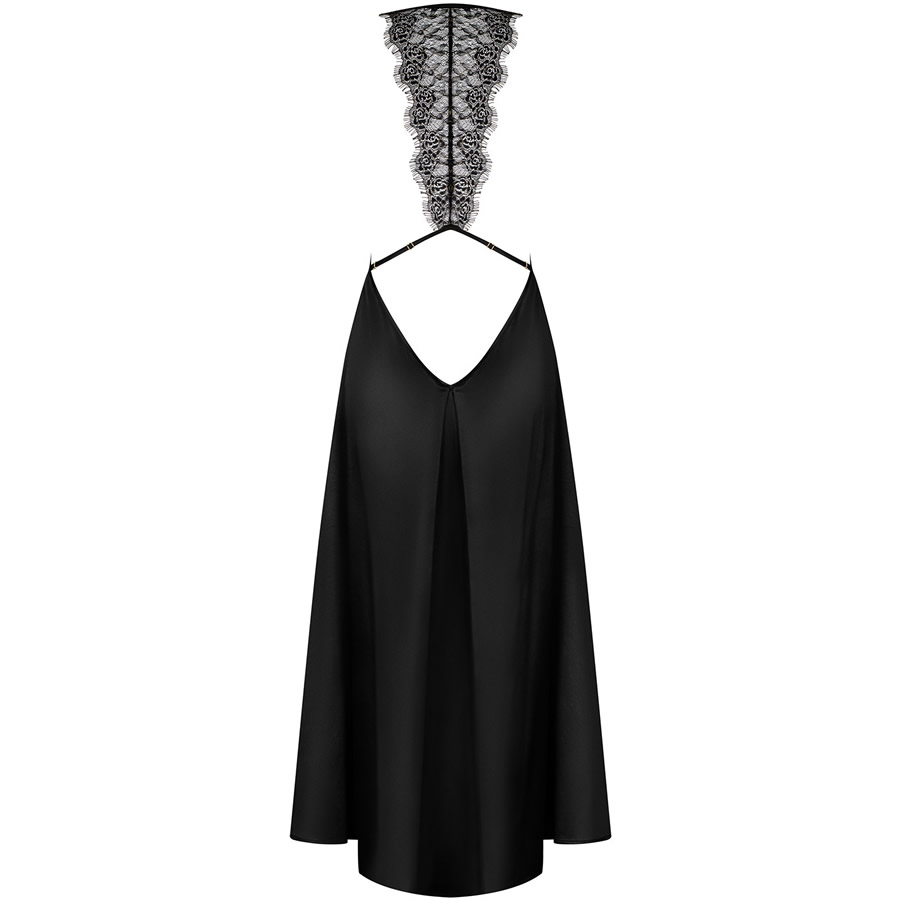 Ta obleka je seksi, unikatna, zapeljiva in drzna. Mehak, padajajoč material poudarja ženstvenost. Dekolte je poudarjen z mehko gubo na prsih. Hrbtni del krasi širok pas čipke, ki se nadaljuje v 2 paščka s prilagodljivo dolžino. Hrbtni del je globoko odprt, vse do linije nad zadnjico.