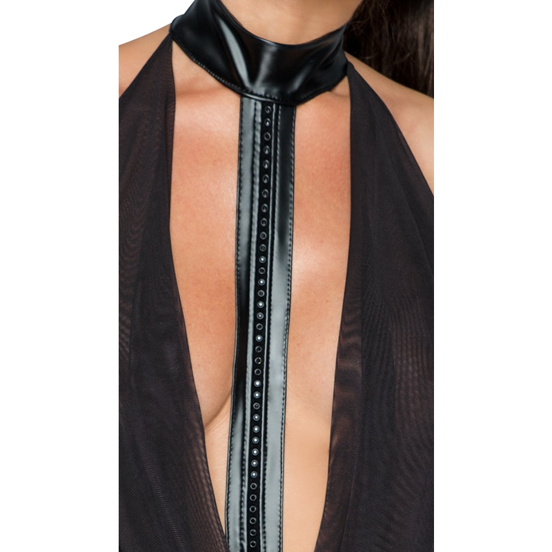 Material: prosojno blago 93% poliester, 7% spandeks; wetlook 76% poliester, 24% spandeks, polimer vrhnji sloj.