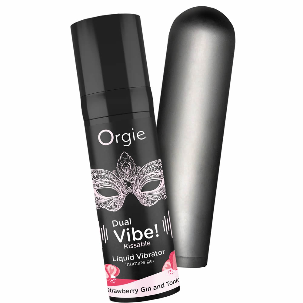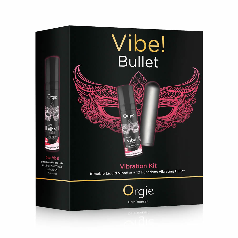 Izkusite moč Orgie Vibe! Bullet, vibracijskega kompleta. Komplet združuje mravljinčaste učinke Dual Vibe! Kissable Liquid Vibratorja z okusnim okusom jagodnega gina in tonika in močne vibracije mini vibracijskega naboj z 10 vibracijskimi načini . Več vibracij, ki izbruhnejo v intenziven užitek. Dual Vibe! Kissable Liquid Vibrator zagotavlja blago mravljinčenje in okusen okus, ki doda dodatno plast užitka pri oralnem seksu. Mini vibracijski naboj, kompakten, a neverjetno močan.