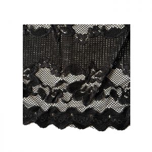Pas za pripenjanje nogavic, izdelan iz mehke elastične čipke. Zelo širok, lahko se ga nosi nizko na bokih kot mikro krilce.