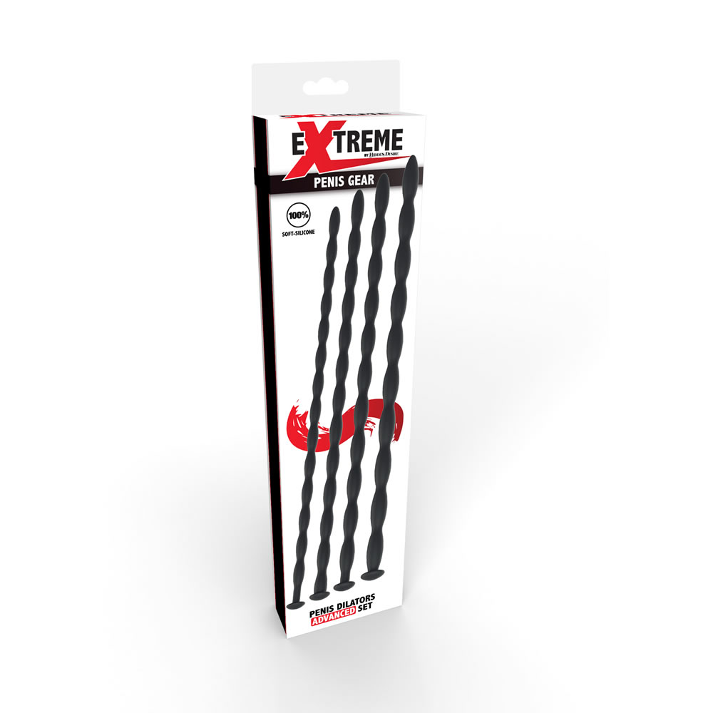 Extreme by Hidden Desire ponuja edinstveno zbirko opreme za penis, posebej oblikovano za tiste, ki si upajo premikati meje užitka. Dilatorji za penis so zasnovani tako, da zagotavljajo dodatno stimulacijo z vsako izboklino, ki zdrsne v tvojo sečnico. Ko bodo globoko v notranjosti, bodo stimulirali tvojo prostato in zagotovili neverjetno poln občutek. Dilatorji za penis lahko delujejo tudi kot zamašilci sperme in zagotavljajo še intenzivnejše orgazme. Izdelani iz 100 % čistega silikona in s širokim podstavkom za varnost in udobje, dilatorji penisa zagotavljajo vznemirljivo izkušnjo. Odkleni svoje najbolj divje fantazije s kompletom Extreme Penis Dilators.